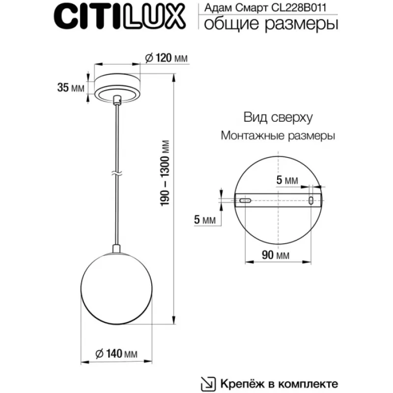 - Подвесной светильник Адам Смарт CL228B011 форма шар белый Citilux