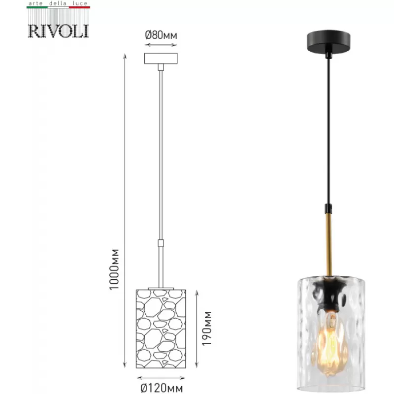 - Стеклянный подвесной светильник Alexandra 4104-201 цилиндр прозрачный Rivoli
