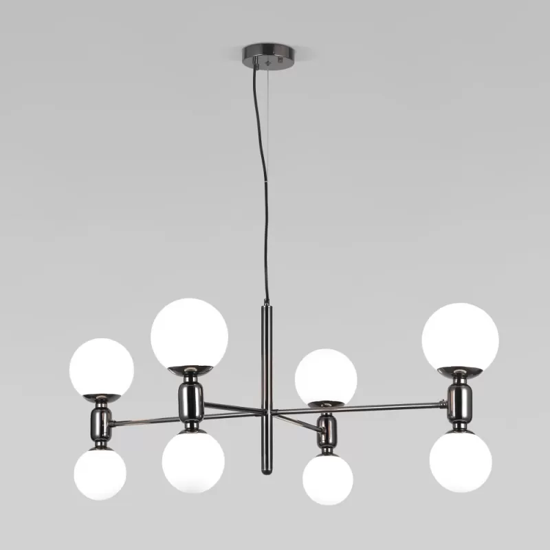 - Стеклянный подвесной светильник Bubble 30182/8 черный жемчуг форма шар белый Eurosvet