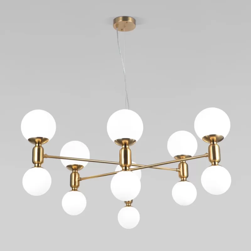 - Стеклянный подвесной светильник Bubble 30182 латунь форма шар белый Eurosvet