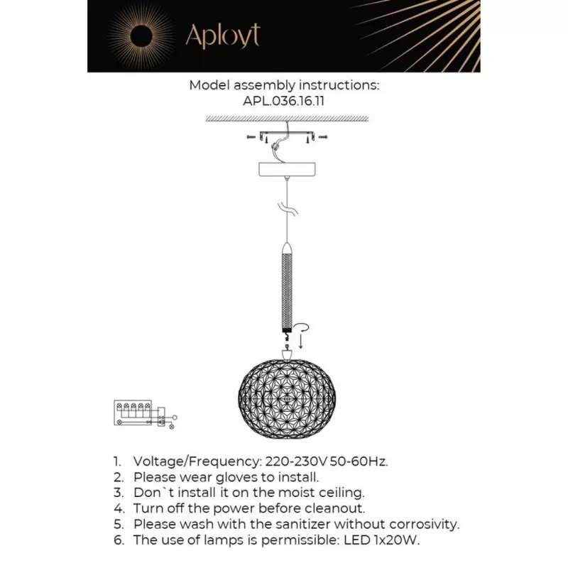 - Подвесной светильник Dorote APL.036.16.11 форма шар прозрачный Aployt