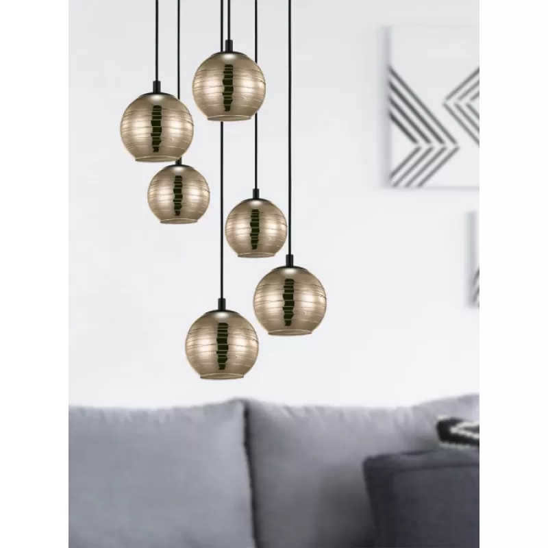 - Стеклянный подвесной светильник Lemorieta 39687 форма шар цвет золото Eglo