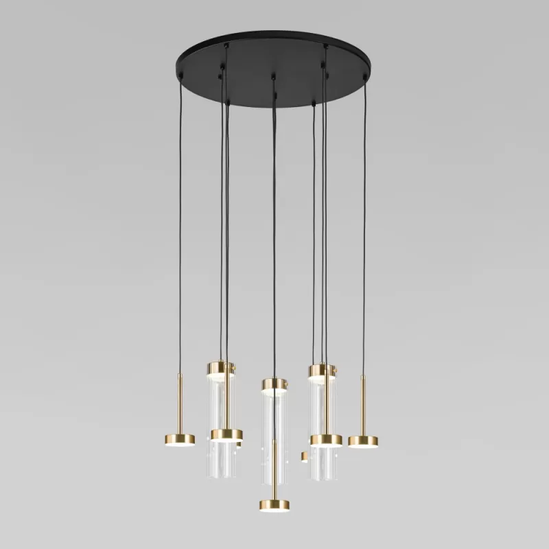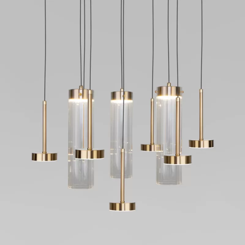 Стеклянный подвесной светильник Quarzo 301102 LED латунь цилиндр прозрачный Eurosvet