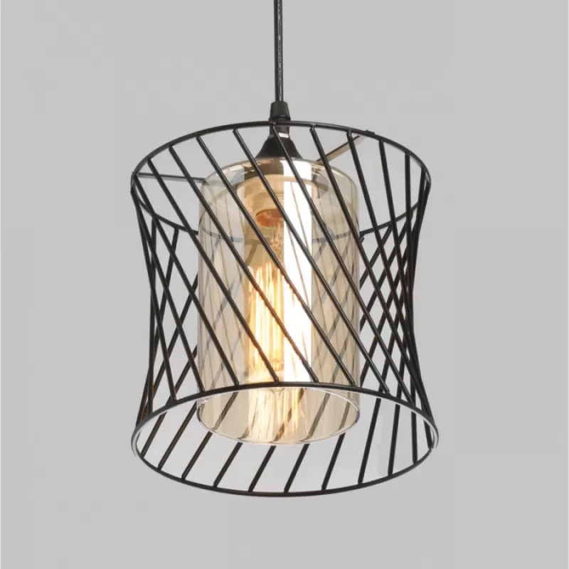 - Стеклянный подвесной светильник Соло 112010501 цилиндр черный DeMarkt