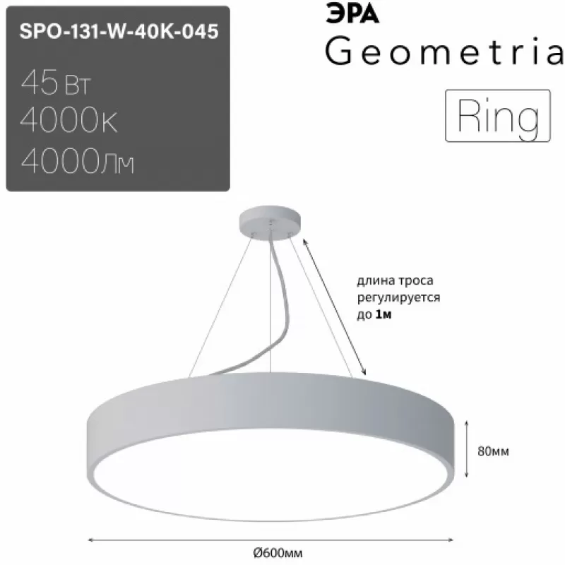 - Подвесной светильник SPO-131-W-40K-045 круглый ЭРА