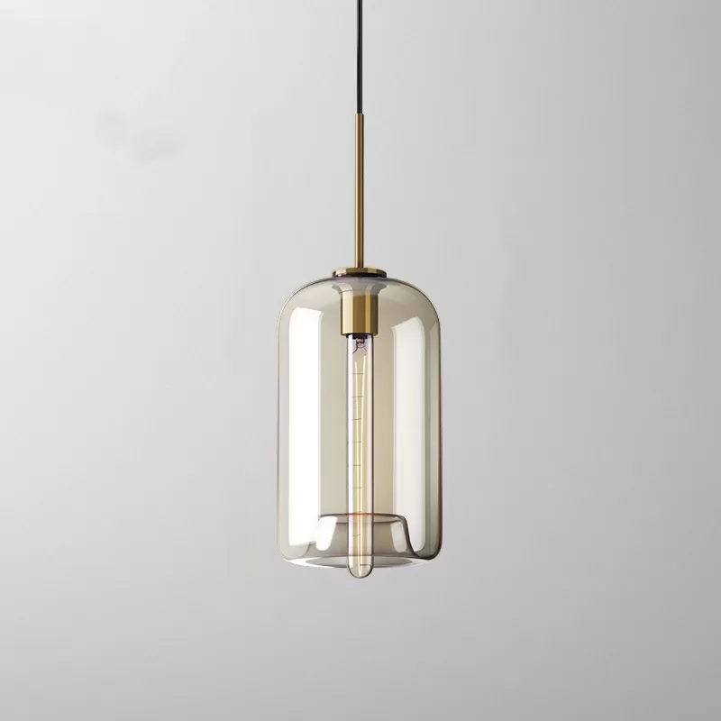 - Стеклянный подвесной светильник Vilmo01 цвет янтарь цилиндр ImperiumLoft