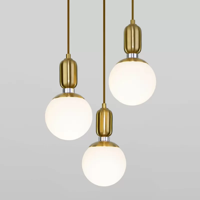 - Стеклянный подвесной светильник Bubble 50151/3 латунь белый форма шар Eurosvet
