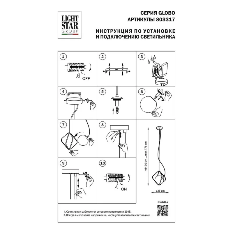 | Форма плафона/абажура | шар |