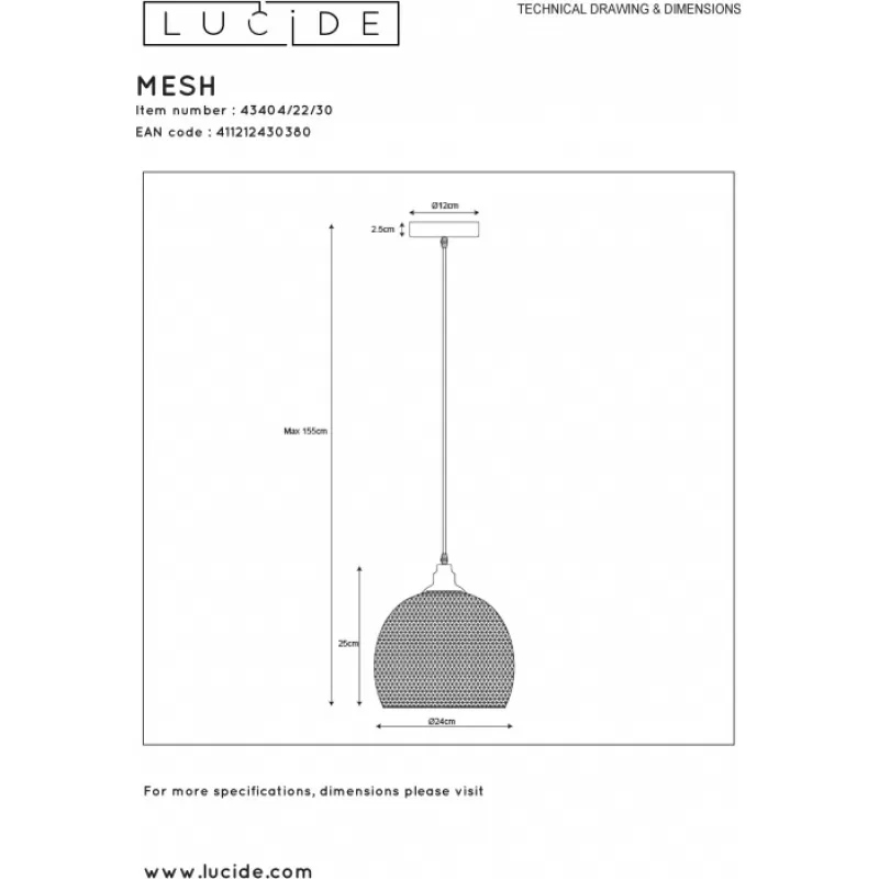 Подвесной светильник Mesh 43404/22/30 черный Lucide