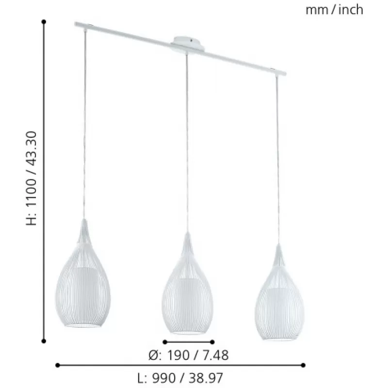 - Стеклянный подвесной светильник Razoni 94388 белый Eglo