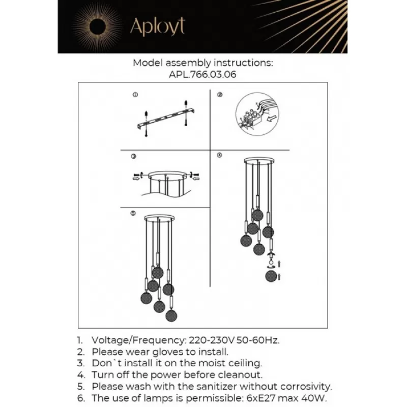 - Стеклянный подвесной светильник Shantal APL.766.03.06 цвет янтарь форма шар Aployt