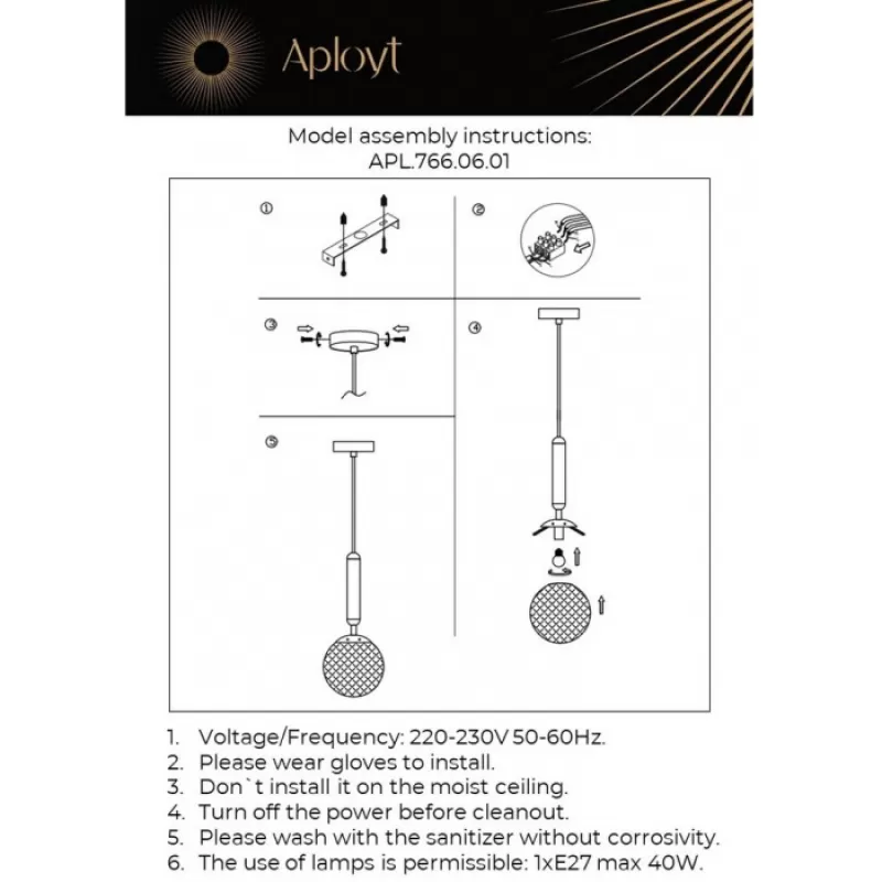 - Стеклянный подвесной светильник Shantal APL.766.06.01 форма шар цвет янтарь Aployt