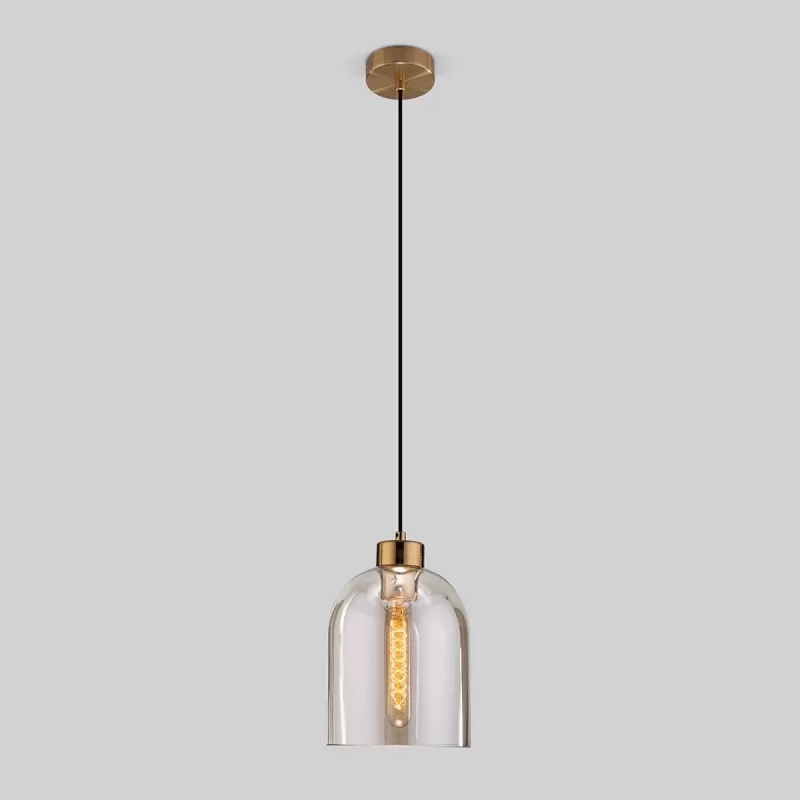 - Стеклянный подвесной светильник Tandem 50119/1 латунь цилиндр цвет янтарь Eurosvet