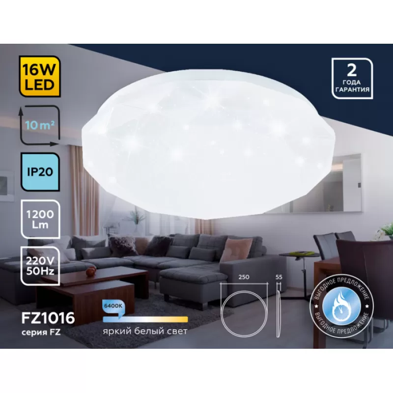 Потолочный светильник ORBITAL FZ1016 Ambrella — по сути бриллиант линейки ORBITAL от знаменитого производителя осветительной техники Ambrella. Страной производителем выступает Россия. Разработчики этой модификации поставили цель разработать максимально гармоничный потолочный осветительный прибор для помещений с невысокими потолками и добились ее. Высота прибора лишь 5.5 сантиметров, однако диаметр светильника — 25 см. Такой прибор способно ровно наполнить светом помещение даже с максимально низкими потолками высотой 2,5-2,6 м.