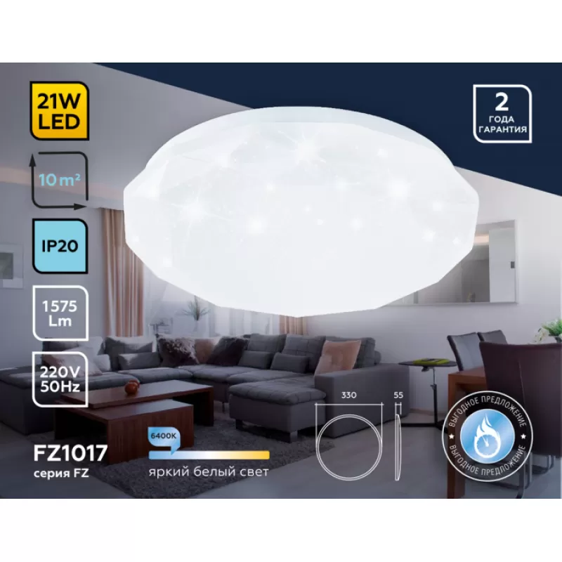 Потолочный светильник ORBITAL FZ1017 Ambrella, можно сказать, жемчужина серии ORBITAL от известного светотехнического производителя Ambrella. Производителем выступает Россия. Разработчики этой модификации обозначили цель спроектировать максимально эстетичный светильник потолочного типа для комнат с невысоким потолком и осуществили ее. В высоту прибор всего 5.5 сантиметров, однако диаметр устройства — 33 сантиметров. Такое устройство способно ровно осветить комнату даже с самыми невысокими потолками в высоту 2,5-2,6 метра.