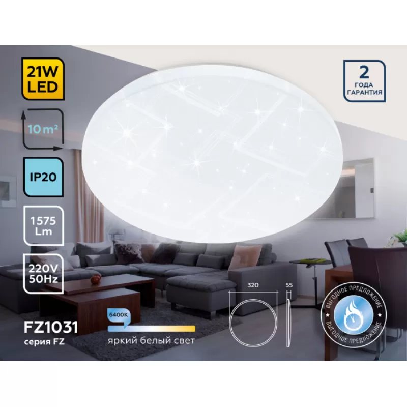 Потолочный светильник ORBITAL FZ1031 Ambrella — бриллиант из линейки ORBITAL от знаменитого светотехнического производителя Ambrella. Производителем выступает Россия. Конструкторы этой модели обозначили задачу разработать максимально гармоничный потолочный светильник для помещений с низким потолком и осуществили ее. Высота светильника всего 5.5 см, однако диаметр устройства — 32 сантиметров. Подобное устройство сможет ровно наполнить светом помещение и с самыми низкими потолками высотой 2,5-2,6 м.