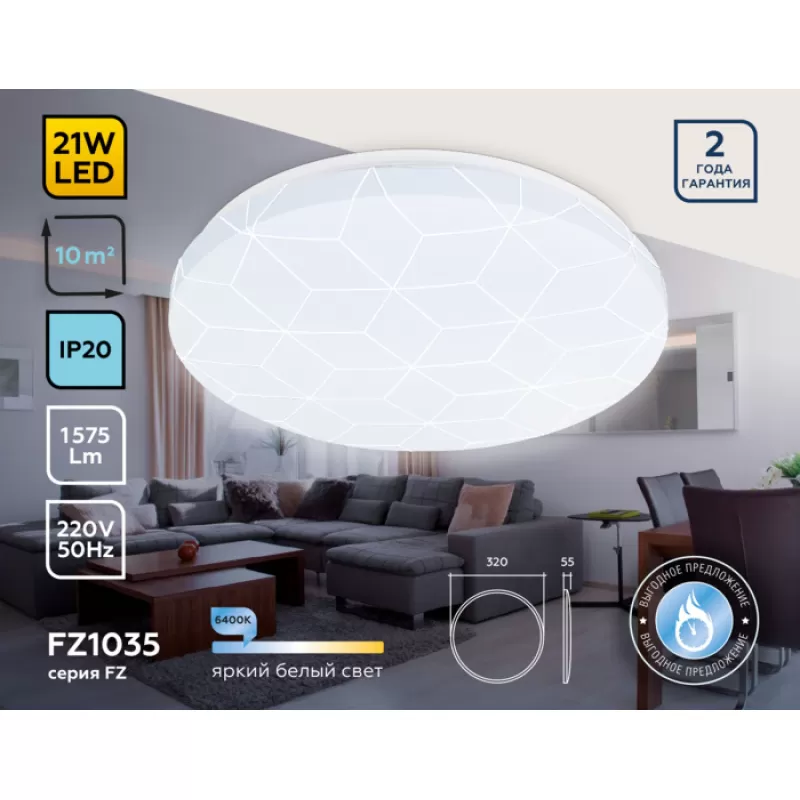Потолочный светильник ORBITAL FZ1035 Ambrella, можно сказать, бриллиант из серии ORBITAL от знаменитого производителя осветительной техники Ambrella. Государство производитель — Россия. Инженеры данной модели обозначили цель спроектировать самый гармоничный потолочный светильник для комнат с низкими потолками и достигли ее. Высота устройства только 5.5 см, но диаметр устройства — 32 сантиметров. Подобное устройство способно ровно наполнить светом помещения и с максимально низкими потолками в высоту 2,5-2,6 метра.