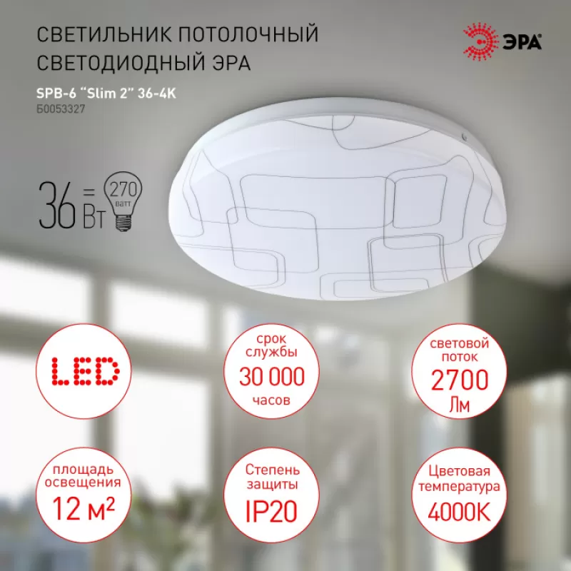 - Потолочный светильник SPB-6 Slim 2 36-4K круглый ЭРА