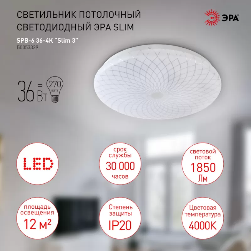 - Потолочный светильник SPB-6 Slim 3 36-4K круглый ЭРА