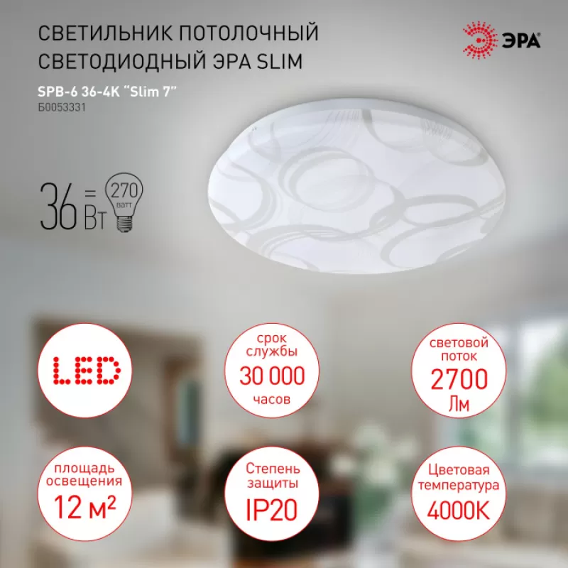 - Потолочный светильник SPB-6 Slim 7 36-4K круглый ЭРА