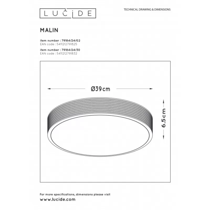 Потолочный светильник Malin 79184/24/02 Lucide, можно сказать, бриллиант серии Malin от легендарного производителя осветительной техники Lucide. Страной производителем является Бельгия. Инженеры этой модели поставили цель создать максимально гармоничный осветительный прибор потолочного типа для комнат с низким потолком и достигли ее. Высота устройства всего 6,5 сантиметров, хотя диаметр прибора — см. Такое устройство сможет равномерно наполнить светом помещение даже с максимально низкими потолками высотой 2,5-2,6 м.