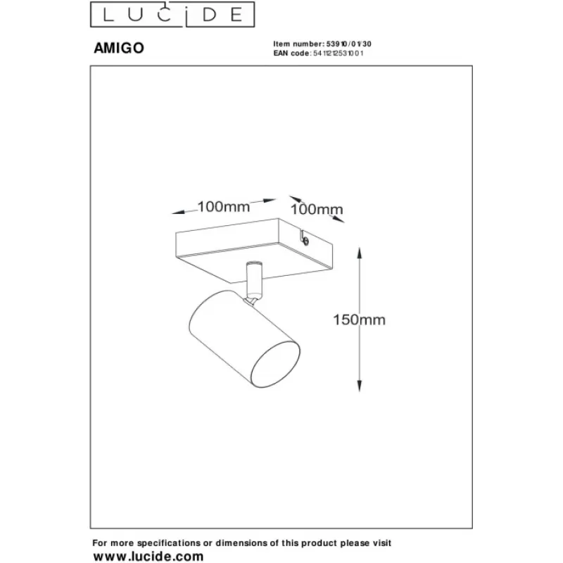 - Спот Amigo 53910/01/30 черный цилиндр Lucide