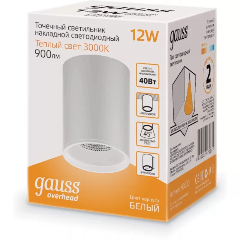 Точечный светильник HD030 цилиндр прозрачный Gauss