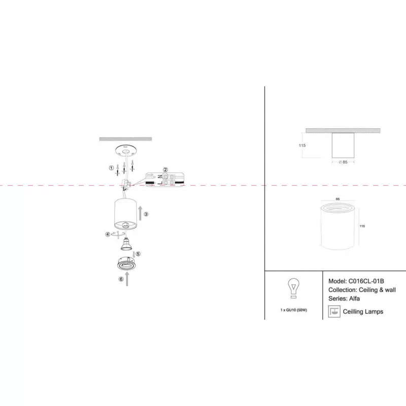 - Точечный светильник Atom C016CL-01B черный цилиндр Maytoni