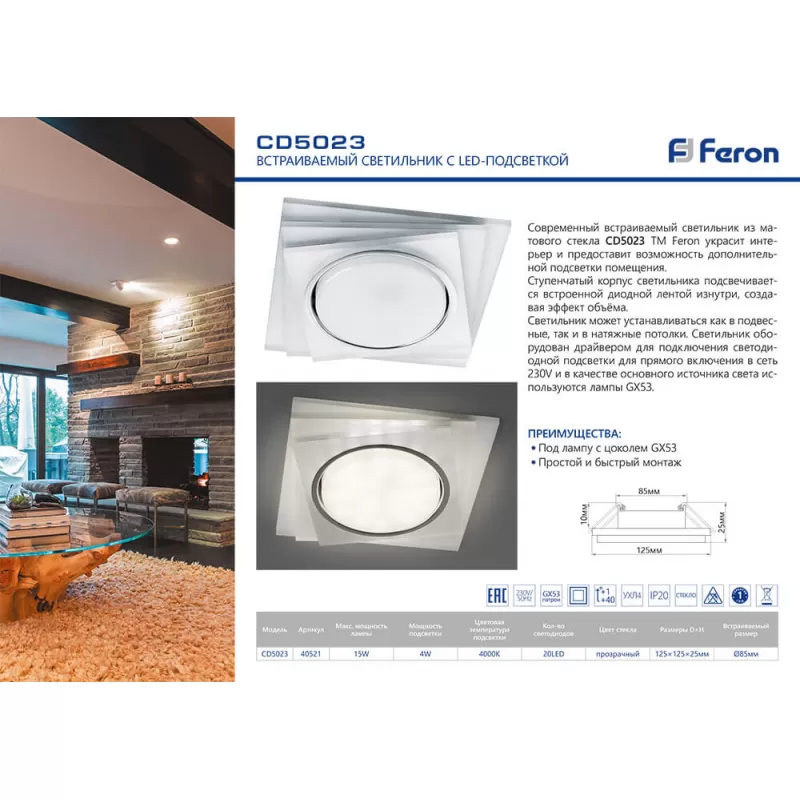 | Цоколь | GX53 |