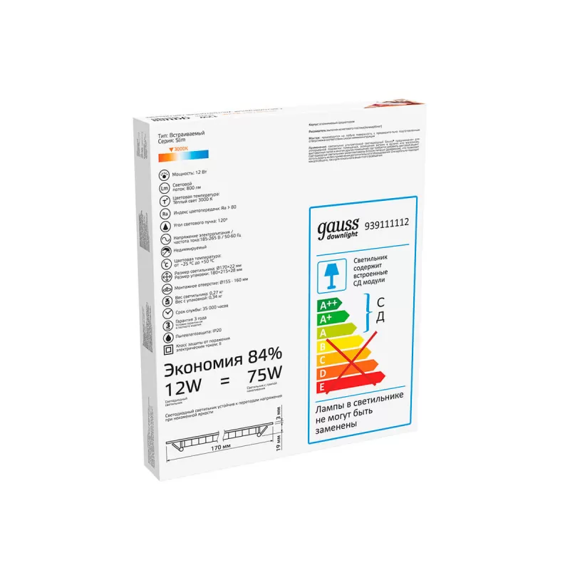 Точечный светильник 939111 939111112 белый Gauss