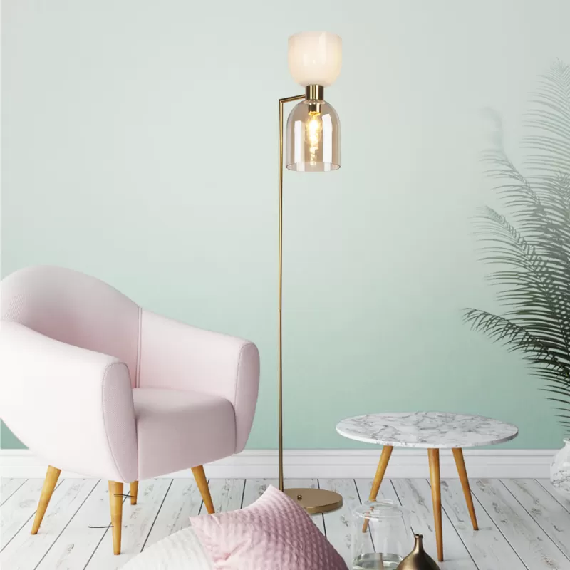 Стеклянный торшер Tandem 01085/2 латунь белый цилиндр Eurosvet