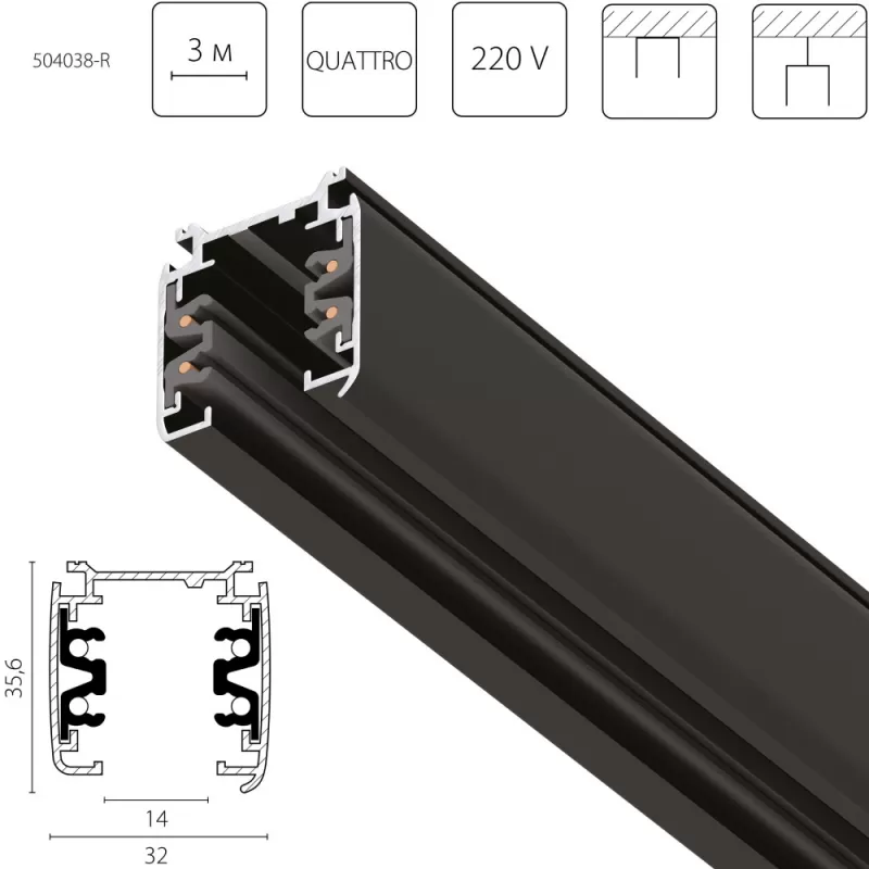 - Шинопровод Quattro 504038-R Lightstar
