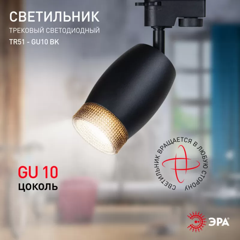 - Трековый светильник TR51 - GU10 BK цилиндр черный ЭРА