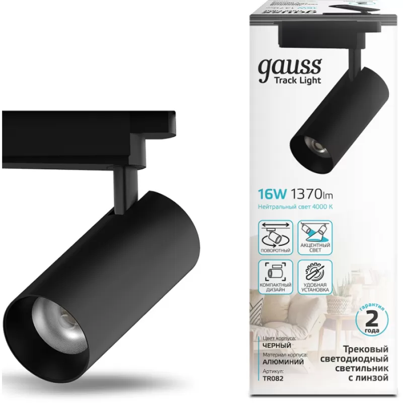 - Трековый светильник Track Lights LED TR082 цилиндр черный Gauss