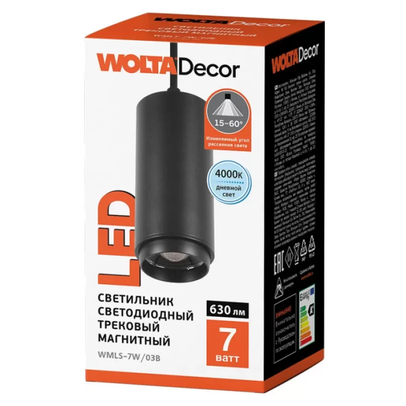 - Трековый светильник WMLS-7W/03B прозрачный цилиндр Wolta