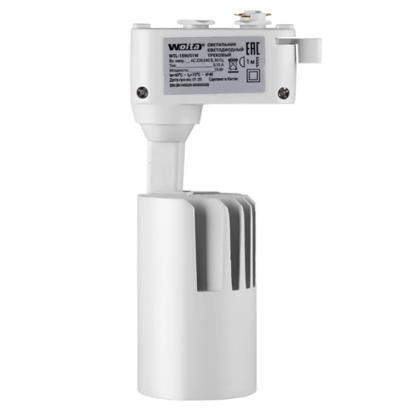 - Трековый светильник WTL-35W/01W белый цилиндр Wolta