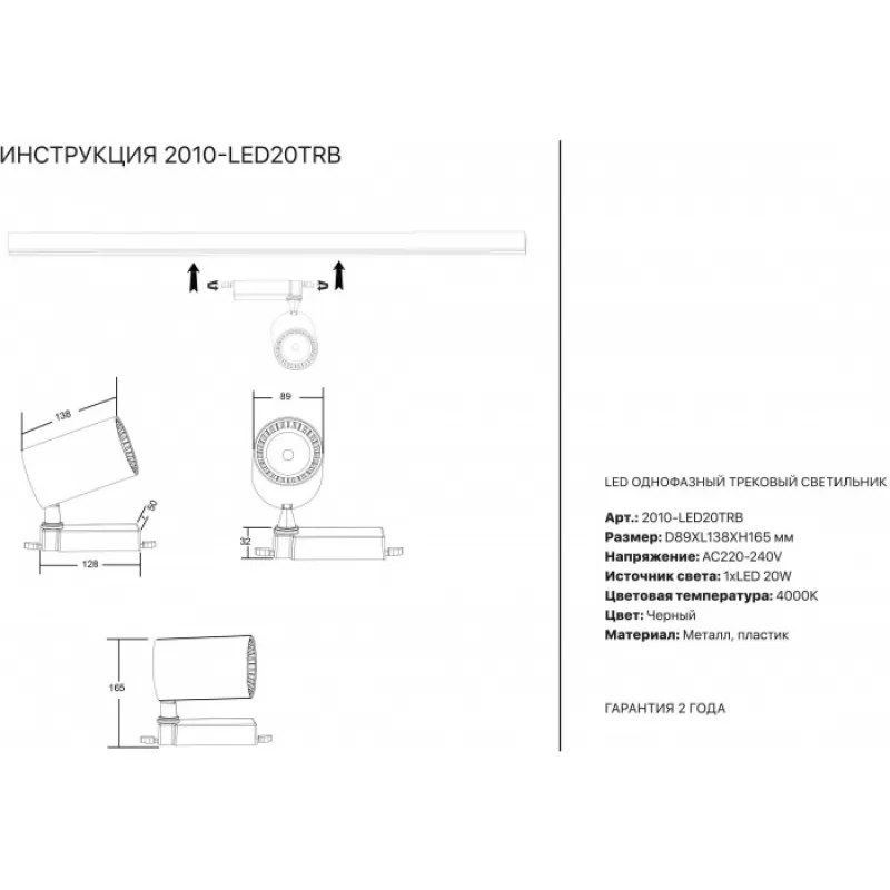 - Трековый светильник 2001 2010-LED20TRB цилиндр черный