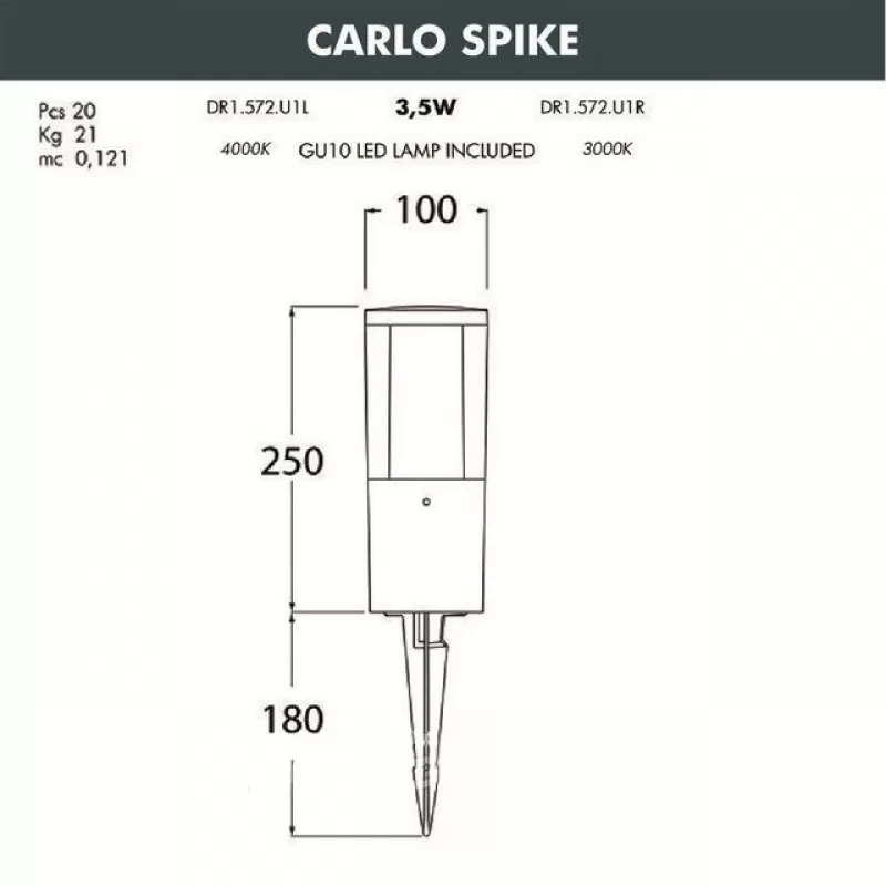 - Грунтовый светильник Carlo DR1.572.000.LXU1L цилиндр белый Fumagalli