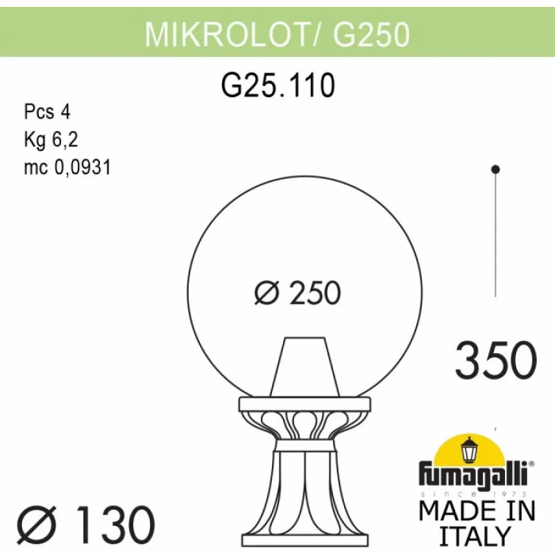 Наземный фонарь GLOBE 250 G25.110.000.WZF1R форма шар Fumagalli