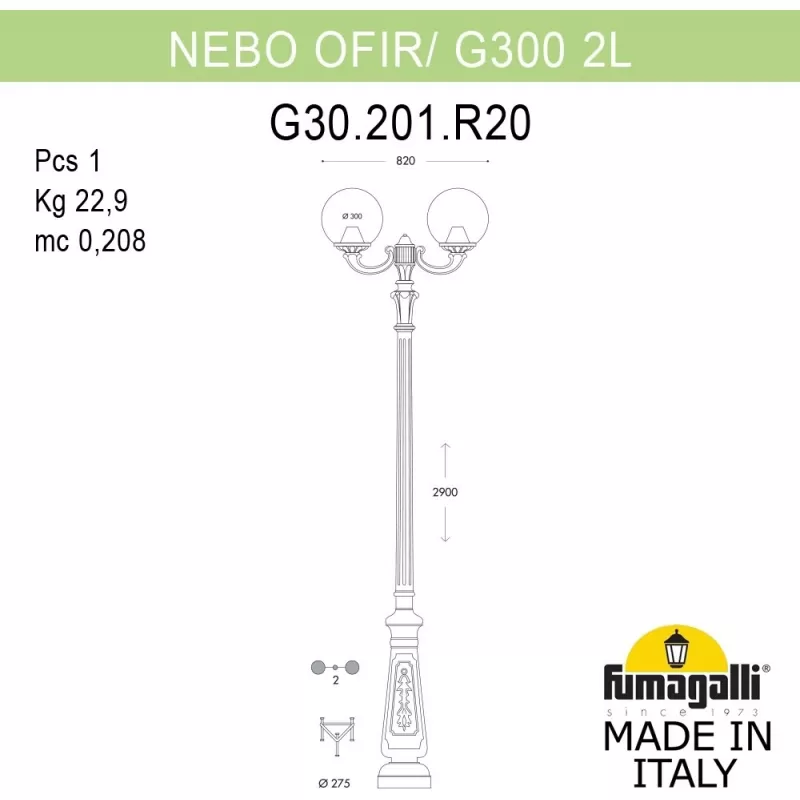 - Наземный фонарь GLOBE 300 G30.202.R20.VYF1R форма шар белый Fumagalli