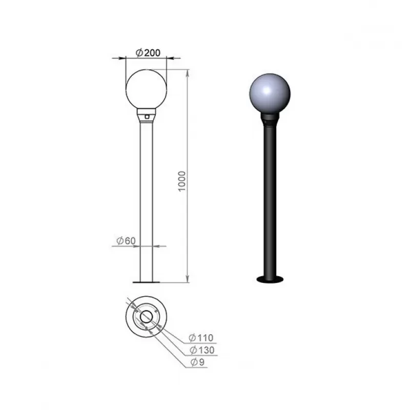 - Наземный светильник Диано 200-41/b-09 форма шар белый Русские фонари