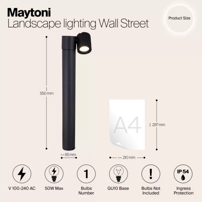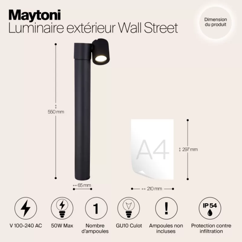 - Наземный светильник Wall Street O010FL-01B черный цилиндр Maytoni