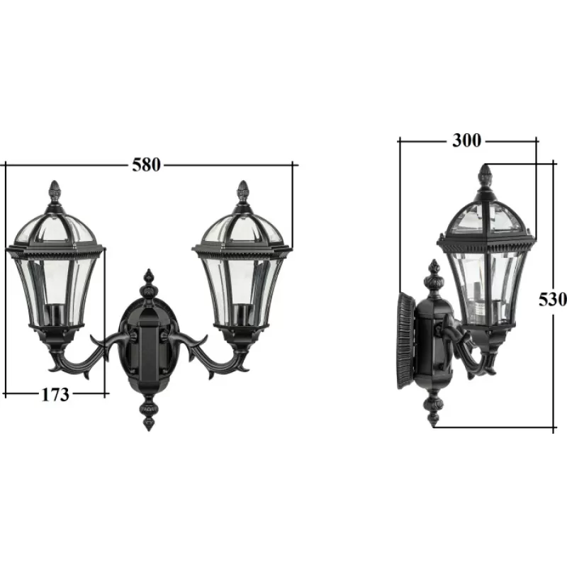 - Стеклянный настенный фонарь уличный ROMA S 95201S 2 15L Bl прозрачный Oasis Light