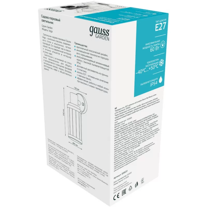 - Настенный светильник уличный Vega GD022 прозрачный цилиндр Gauss